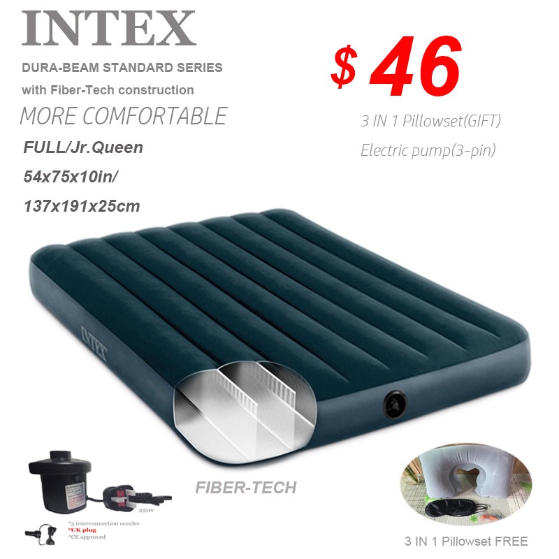 This ultra lightweight bed provides ideal firmness and support for an incredible night s sleep. 10in queen dura beam downy airbed with built in foot pump. Intex dura beam standard series essential rest airbed with built in electric pump bed height 20 queen 4 3 out of 5 stars 1 489. We recommend using intex pumps since they are specifically designed for intex airbeds.